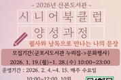 (경인미래신문=민경호 기자) 군포시산본도서관은 2026년에도 관내 시니어들에게 책을 통해 서로 소통하고 공감하는 능동적 독서교육 프로그램인 ‘시니어 북클럽 양성 과정’을 운영한다고 밝혔다. 이번 교육은 2월 4일부터 4월 15일까지 매주 수요일 오전 10시부터 12시까지 총 10주차로 진행되며 북클럽 운영을 위한 운영법, 글쓰기 방법, 주제도서의 낭독과 필사 등에 대해 교육해 시니어 독서동아리로 자발적인 활동을 할 수 있도록 실전교육 위주로 진행된다. 산본도서관에서 2025년도에 ‘낭독과 필사로 떠나는 글쓰기 여행’ 수업을 맡았던 최선화 강사가 진행하며 도서관은 교육 기간 중, 신규 시니어 독서동아리를 모집 및 결성하여 지속적인 독서 모임 활동을 지원할 계획이다. 함께 글쓰기 및 독서에 관심있는 관내 55세 이상 시니어라면 누구나 신청 가능하며, 1월 19일부터 선착순으로 20명을 모집한다. 신청은 군포시도서관누리집(gunpolib.go.kr) 문화행사신청 또는 전화 접수가 가능하다. 하은호 군포시장은 “앞으로 산본도서관이 시니어 세대가 책으로 하나 되는 소통공간이 될 수 있도록 다양한 독서교육 프로그램을 운영하겠다”라며 “독서교육을 통해 자발적인 독서동아리