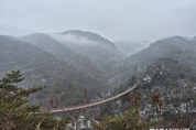 (경인미래신문=민경호 기자) 경기 북부 대표 명산인 감악산 출렁다리가 지난 16일 추운 겨울을 맞아 관광객들의 발길이 다소 줄어든 모습이다. 파주시에 따르면 지난 2021년 10월 기준 누적 방문객 130여만 명을 기록하며 대표 관광명소로 자리매김했다. 감악산 출렁다리는 깊은 계곡 위를 가로지르는 산악 현수교로, 흔들리는 다리 위에서 짜릿한 스릴과 함께 수려한 자연경관을 동시에 즐길 수 있는 것이 특징으로 교량 연장은 150m, 폭은 1.5m, 높이는 45m에 달한다. 이 출렁다리는 성인 900명이 동시에 통행할 수 있도록 설계됐으며 초속 30m의 강풍과 진도 7의 지진에도 견딜 수 있는 내풍·내진 구조를 갖췄다. 특히 사계절마다 변화하는 감악산의 풍경은 방문객들에게 색다른 볼거리를 제공하고 있으며 주말과 휴일에는 가족 단위 방문객과 등산객, 관광객들의 발길이 꾸준히 이어지고 있다. 출렁다리는 비교적 완만한 등산 코스와 연계돼 남녀노소 누구나 쉽게 접근할 수 있으며 인근에는 감악산 힐링파크와 마장호수 전경을 한눈에 조망할 수 있는 전망대와 호수를 따라 산책할 수 있는 둘레길도 조성돼 있다. 미국 보스턴에서 가족과 함께 방문한 관광객은 "감악산의 경치가 매우