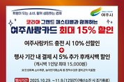 (경인미래신문=민경호 기자) 여주시(시장 이충우)는 ‘2025 코리아 그랜드 페스티벌’ 기간인 오는 10월 29일부터 11월 9일까지 ‘여주사랑카드 최대 15% 할인’ 행사를 한다고 밝혔다. 여주사랑카드 사용자는 충전 시 10% 선할인(인센티브 충전)을 받을 수 있으며 행사기간 내 결제 시 추가로 5% 후캐시백 지원을 받을 수 있다. 5% 캐시백 행사는 예산 소진시까지 1인 최대 1만 5000원까지 혜택을 받을 수 있도록 지원하며 지원 내역은 모바일 경기지역화폐 앱에서 실시간으로 확인할 수 있다고 안내했다. (5% 캐시백 행사에 민생회복 소비쿠폰, 농어민기회소득 등 정책수당은 결제 금액에 포함되지 않는다.) 코리아 그랜드 페스티벌은 내수 활성화를 위해 중소벤처기업부, 산업통상자원부 등 정부가 주관하는 소비 축제로 10개 부처와 3만개 유통사가 참여하며 지역사랑상품권과 디지털온누리상품권 추가 할인, 상생소비복권, 카드사 캐시백 이벤트 등을 진행한다. 여주시 일자리경제과 관계자는 “이번 행사를 통해 지역 내 소비 진작, 지역 소상공인들의 매출 증대에 도움이 되기를 바란다”라며 “시민분들의 많은 관심과 참여를 바란다”고 말했다. 해당 내용은 여주시청 홈페이지 및
