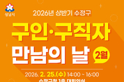 (경인미래신문=민경호 기자) 성남시(시장 신상진)는 시민의 취업을 지원하고 지역 기업의 인력난 해소를 위해 오는 2월 25일 오후 2시부터 4시까지 수정구청 1층 대회의실에서 ‘구인·구직자 만남의 날’ 행사를 연다. 이번 행사에는 12개 기업이 참여해 다양한 직종을 대상으로 구직자와 1대1 현장 면접을 진행하며 총 55명을 채용할 예정이다. 참여 기업과 채용 직종은 △㈜현대에쓰앤에쓰(생산) △㈜케어마스터(객실관리, 미화) △노무법인 더보상 법률원(영업) △프리미안데이케어(요양보호사) △하이머시닝㈜(MCT 가공·조작) △㈜아람인테크(조리원) △케이엔자산관리㈜(보안) △공정노무법인(법률사무원 외근) △㈜대원버스(승무사원) △이엠플러스(생산, 자재관리) △파네트리(판매, 생산) △분당센트럴요양병원(조리)이다. 구직자는 이력서 등 구비서류를 지참해 행사 당일 현장을 방문하면 희망 기업의 부스에서 순서에 따라 면접에 참여할 수 있다. 시는 현장 면접과 함께 1대1 취업 컨설팅, 지문 적성 검사, 이력서 사진 무료 촬영 등 다양한 부대행사도 운영해 구직자의 취업 준비를 지원할 계획이다. 참여 방법과 자세한 사항은 성남시일자리센터 또는 성남시일자리센터 누리집(job.se