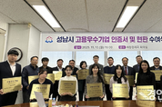 (경인미래신문=민경호 기자) 성남시(시장 신상진)는 어려운 경제 여건 속에서도 지역 일자리 창출에 기여한 18개 기업을 ‘2025년 고용우수기업’으로 선정하고 10일 인증서와 현판을 수여했다. 이날 오후 3시 성남시청 재정경제국 회의실에서 열린 수여식에는 선정된 기업의 대표및 실무책임자들이 참석해 고용우수기업 인증서(유효기간 2년)와 현판을 전달받았다. ‘성남시 고용우수기업 인증제’는 기업의 고용 확대를 유도하고 지속 가능한 성장을 지원해 지역경제를 활성화하기 위한 제도로, 일반 고용우수기업과 청년 고용우수기업 두 분야에서 기업을 선정해 다양한 인센티브를 제공하고 있다. 시는 지난 8월 서류심사와 현장조사를 거쳐 일반 고용우수기업 9개사와 청년 고용우수기업 9개사를 최종 선정했다. 2025년 일반 고용우수기업으로는 △에스에스티랩 △우보재난시스템 △라미나 △메디에이지 △테라시온바이오메디칼 △에이텍시스템 △에이텍 △뉴빛테크놀러지 △오래온라이프사이언스가, 청년 고용우수기업으로는 △비엔에스테크 △알에프코어 △우노실리콘 △아이브릭스 △제노레이 △아와소프트 △에이텍모빌리티 △한솔생명과학 △아이렌이 선정됐다. 선정된 기업에는 2년간(2025.11.1.~2027.10.31