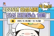 (경인미래신문=민경호 기자) 안성시는 8일부터 14일까지 7일간 ‘2025년을 빛낸 안성시 10대 뉴스’ 선정을 위한 온·오프라인 시민 투표를 진행한다고 밝혔다. 이번 투표는 한 해 동안 시가 추진한 주요 정책과 성과를 시민이 직접 선택하는 것으로 지역민 소통강화는 물론 올바른 시정 운영과 향후 정책 반영을 위해 마련됐다. 2025년 올해의 뉴스는 총 16건으로 ▶지역경제 ▶도시개발·인프라 ▶교통 ▶복지 ▶교육·문화 ▶환경 ▶농업·축산 등 다양한 분야에서 선별된 정책들이 포함됐다. 투표는 시청 홈페이지 내 ‘소통의 길목’과 ‘안성시 블로그’를 통해 누구나 참여할 수 있으며 16개 뉴스 가운데 1인당 5개의 뉴스를 선택하는 방식으로 진행된다. 본인인증 후 참여가 가능하며 투표 참여자 중 추첨을 통해 총 300명에게 온라인통합상품권 1만 원 모바일쿠폰을 지급할 예정이다. 이와 함께 시민 접근성을 높이고자 시청 1층 로비와 민원실에 설문조사를 마련해 오프라인 참여도 가능하다. 시 관계자는 “2025년 안성이 이뤄낸 의미 있는 변화들은 시민 여러분의 관심과 성원이 있었기에 가능했다”며 “한 해를 마무리하는 시점에 시민분들이 생각하는 ‘올해 안성의 대표 뉴스’ 선정에