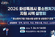 (경인미래신문=민경호 기자) 화성특례시(시장 정명근)가 관내 중소기업과 소상공인의 경영 애로 해소와 지원사업 활용도를 높이기 위해 오는 26일 화성상공회의소 컨벤션홀에서 ‘2026년 화성특례시 중소벤처기업 지원 시책 설명회’를 개최한다. 이번 설명회는 화성특례시를 비롯해 경기지방중소벤처기업청, 중소벤처기업진흥공단 등 13개 유관기관이 추진하는 ‘2026년 기업지원 사업’에 대한 종합적인 정보를 제공하기 위해 마련됐다. 설명회는 오후 2시부터 4시 30분까지 진행된다. 사전 신청도 가능하며 별도 사전 신청 없이 기업인 및 소상공인 누구나 당일 현장 방문으로도 참여할 수 있다. 지원사업 발표는 ▲정책 분야(화성시, 화성산업진흥원) ▲일자리 분야(경기도일자리재단) ▲자금 분야(중소벤처기업진흥공단, 기술보증기금, 신용보증기금, 경기신용보증재단) ▲판로·수출분야(경기지방중소벤처기업청, 경기도경제과학진흥원, 경기지역FTA통상진흥센터) ▲R&D 분야(경기지방중소벤처기업청, 경기테크노파크) ▲소상공인 분야(소상공인시장진흥공단) 순으로 진행된다. 또한 전 참여기관이 설명회장 외부에 별도로 마련된 상담창구에서 1:1 상담을 진행해 각 기업의 상황에 맞는 지원사업을 상세