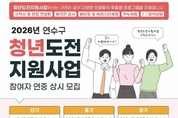(경인미래신문=민경호 기자) 인천 연수구(구청장 이재호)는 청년들의 경제 활동과 노동시장 진입을 돕기 위해 ‘2026년 청년도전지원사업’ 참여자를 모집한다. ‘청년도전지원사업’은 6개월 이상 취업·창업·교육·직업훈련 등 구직과 경제 활동에 참여하지 않은 청년을 대상으로 스스로 역량을 키우고 취업을 준비할 수 있도록 지원하는 사업이다. 구는 총 104명의 참여자를 선발해 개인별 심층 상담을 진행하고 자신감 회복, 진로 탐색 및 취업역량 강화 교육 등 다양한 프로그램을 제공할 계획이다. 참여자는 자신의 상황에 맞춰 단기(5주), 중기(15주), 장기(25주) 과정을 선택할 수 있으며 이수 유형에 따라 50만 원에서 최대 350만 원까지 참여 수당과 장려금을 받을 수 있다. 참여 신청은 ‘연수청년자리’ 누리집을 통해 연중 상시 할 수 있으며 자세한 사항은 연수구 청년도전지원 사업팀에 문의하면 된다. 이재호 구청장은 “청년들이 다시 구직활동에 도전할 수 있도록 실질적으로 돕는 맞춤형 사업”이라며 “청년들이 자신감을 회복해 일에 도전하고 성공적으로 사회에 자리 잡길 기대한다”라고 말했다.