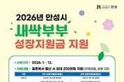 (경인미래신문=민경호 기자) 안성시는 지난 13일 '안성시 출산·양육 지원 조례' 일부개정을 통해 새싹부부성장지원금 연령 기준(49세이하 신혼부부)을 폐지해 지원 대상을 확대했다. 이 사업은 신혼부부의 안정적인 생활 기반 마련과 출산 장려를 목적으로 작년 7월 1일부터 시행됐으며 단기간에 예산이 소진될 만큼 많은 관심을 받았으나 49세 이하로 연령 제한 기준이 있어 다양한 가족 형성 시기를 포용하지 못하는 아쉬움이 있었다. 이에 안성시는 이러한 한계를 보완하고자 연령 기준을 전면 폐지하였으며 더 많은 시민이 혜택을 누릴 수 있도록 지원 범위를 확대 하였다. 지원금은 1차 성장지원금(결혼)과 2차 성장지원금(출산)으로 구성되어 단계적으로 지급된다. 1차 성장지원금은 2025년 7월 이후 혼인신고를 완료한 부부가 6개월 이내에 신청할 경우, 100만원의 지역화폐가 지급된다. 다만 부부 중 한 명이 안성시 외 지역에 주소를 두고 있는 경우 혼인신고 후 30일 이내 전입신고를 완료하면 신청할 수 있으며 49세 이상인 경우 2026. 1. 1. 이후 혼인신고한 부부부터 지원 가능하다. 2차 성장지원금은 1차 지원금을 받은 신혼부부가 10년 이내 안성시에서 첫째 자녀를
