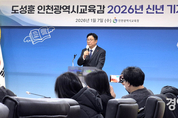 (경인미래신문=민경호 기자) 도성훈 인천광역시교육감은 7일 2026년 신년 기자간담회에서 "지금은 현안에 충실히 집중해야 할 시기라며 3선 도전에 대한 입장은 다양한 경로를 통해 알려질 것”이라며 "현재로서는 입장을 표명하는 것이 적절하지 않다"고 밝혔다. 이날 도 교육감은 "2026년에는 인천교육을 한 단계 더 발전시키기 위해 3가지 방향에서 변화를 만들어 가겠다"고 말했다. 먼저 학교 현장에 대한 실질적 지원을 강화해 학교가 교육 본연의 역할에 집중할 수 있도록 교육청의 지원 기능을 더욱 확대하고 모든 유·초·중·고교의 교육여건 개선 과제를 발굴해 신속하게 실행하겠다고 약속했다. 또한 "현장의 목소리를 정책의 출발점으로 삼아, 지난해에 이어 올해도 '제2의 학교현장지원 100대 과제'와 '제2의 특수교육 여건 개선 33대 과제'를 현장과 함께 새롭게 수립하고 이행하겠다"며 "학교 현장에 실질적인 도움이 되도록 최선을 다하겠다"고 강조했다. 이어 '생각하는 교육', '질문하는 교육', '움직이는 교육'을 통해 깊이 있는 교육 혁신을 이루기 위해서는 "인간, 자연, AI가 공존하고 협력해야 하는 시대"라며 "인간보다 1만 배 똑똑한 초인공지능 시대가 도래할
