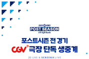 (경인미래신문=민경호 기자) CGV는 오는 5일부터 약 한 달간 펼쳐지는 ‘2025 KBO 포스트시즌’ 전 경기를 SCREENX로 생중계한다고 2일 밝혔다. 이번 중계는 와일드카드 결정전을 시작으로 준플레이오프, 플레이오프, 한국시리즈까지 이어지며 팬들에게 극장에서만 경험할 수 있는 몰입감 높은 응원 문화를 선사할 예정이다. 특히 이번 포스트시즌은 모든 경기를 SCREENX LIVE로 만나볼 수 있다는 점에서 의미가 크다. SCREENX LIVE는 실시간 경기 장면을 중앙 스크린뿐만 아니라 좌, 우 벽면까지 확장해 송출하는 CGV만의 생중계 포맷으로, 5.1채널 서라운드 사운드와 함께 압도적인 몰입감을 제공한다. 이를 통해 관객들은 마치 경기장에 있는 듯한 현장감을 느끼며 다양한 각도로 경기를 즐길 수 있다. CGV는 야구 팬들을 위한 풍성한 이벤트도 마련했다. ‘한국시리즈 1차전 직관 티켓’을 비롯한 다양한 경품 증정 이벤트가 CGV ICECON 인스타그램(@cgv_icecon)을 통해 순차적으로 공개될 예정이다. ‘2025 KBO 포스트시즌’ SCREENX LIVE 예매 일정 및 자세한 내용은 추후 CGV 모바일 앱에서 확인할 수 있다. 전정현 CJ CG