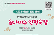 (경인미래신문=민경호 기자) 의왕시는 오는 11일 오후 3시 왕림이팝아트홀에서 남녀 노소 누구나 즐길 수 있는 공연 ‘옴니버스 인형극장’을 선보인다. 옴니버스 인형극장은 표정을 잃어가는 현대인의 일상을 인형극으로 형상화한 작품이다. 공연을 준비한 연희공방 음마갱깽은 전통예술을 현대적 감각과 접목해 세대를 아우르는 작품을 창작해온 단체로 “인형은 호기심과 소통의 힘을 가지 매체”라는 철학을 가지고 활동을 이어가고 있다. 이날 공연에서는 웃음을 잊은 사람들, 슬픔조차 마음껏 표현하지 못하는 이들의 모습을 무대 위에 담아내며, 인형의 유쾌한 몸짓과 극적 장면을 통해 관객들에게 깊은 울림을 전할예정이다. 윤은숙 의왕시 문화관광과장은 "이번 무대가 시민모두에게 웃음과 감동 그리고 일상의 위로가 되기를 바란다"고 전했다 공연은 전석 무료로 진행되고 관람을 원하는 시민은 의왕시 통합예약시스템을 통해 사전 예매할 수 있다. 기타 자세한 사항은 왕림이팝아트홀로 문의하면 된다.
