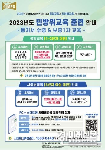 (경인미래신문=민경호 기자) 김포시는 2023년 민방위대원 대상 하반기 보충교육을 실시한다.