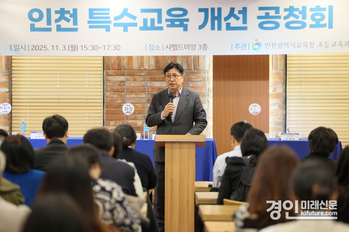 (경인미래신문=민경호 기자) 인천광역시교육청(교육감 도성훈)은 지난 3일 샤펠드미앙에서 교직원, 학생, 학부모, 시민 등 150여 명이 참석한 가운데 ‘인천 특수교육 개선 공청회’를 개최했다.