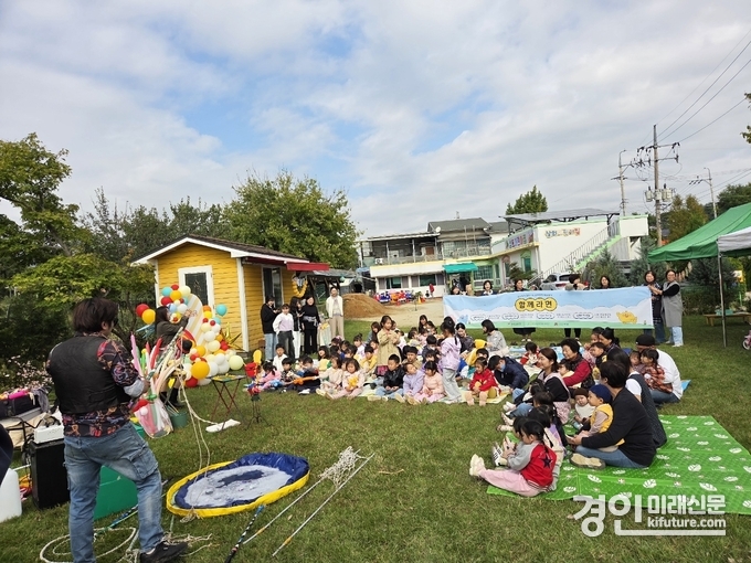 프로그램은 ▲센터의 버블·매직쇼과 부모·자녀 체험활동, 에어바운스 놀이 ▲일죽어린이집의 바람개비 만들기, 체육활동 ▲삼희어린이집의 밧줄놀이, 놀이미술 ▲서운어린이집의 가을낙엽과 밤줍기 체험활동이 선보여 아이들이 가을 하늘 아래 마음껏 웃고 뛰놀 수 있는 다채로운 체험의 장이 됐다.