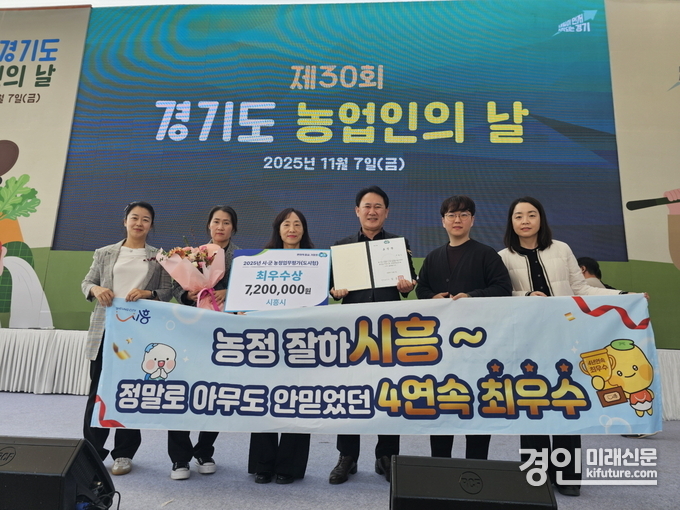 (경인미래신문=민경호 기자) 시흥시(시장 임병택)는 지난 7일 ‘제30회 경기도 농업인의 날’ 기념행사에서 경기도가 주관한 ‘2025년 농정업무 평가’ 최우수상을 받았다.