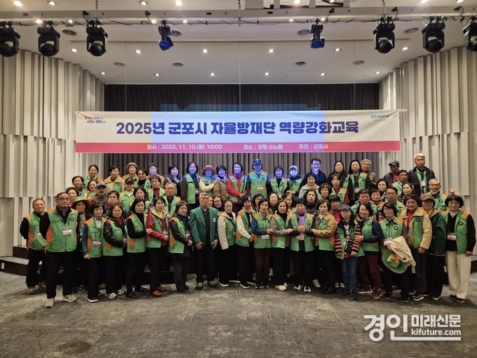 (경인미래신문=민경호 기자) 군포시(시장 하은호)는 지난 10일 경기도 양평군 일원에서 군포시 자율방재단을 대상으로 ‘군포시자율방재단 역량강화교육’을 개최했다.