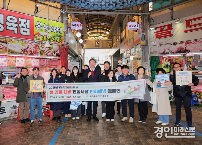 (경인미래신문=민경호 기자) 인천 미추홀구(이영훈)는 설 명절을 앞두고 5일부터 6일까지 총 2일간 관내 전통시장을 방문해 ‘동절기 한파 예방 캠페인 및 화재 대비 집중 안전 점검’을 실시한다.