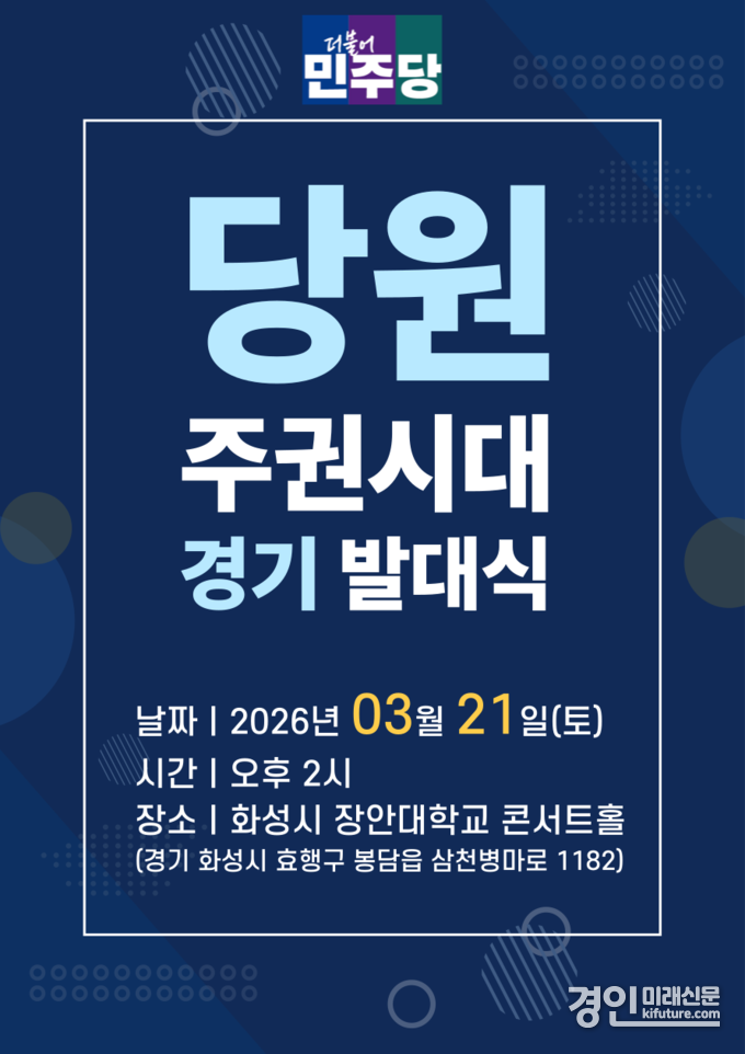 오는 3월 21일 오후 2시 효행구 봉담읍에 소재한 장안대학교 콘서트홀에서 더불어민주당의 권리당원 주권 정당이란 정의를 내걸고 ‘당원주권시대 경기발대식’을 개최한다.