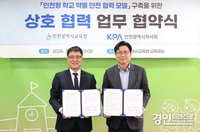 (경인미래신문=민경호 기자) 인천광역시교육청(교육감 도성훈)은 4일 인천광역시약사회(회장 윤종배)와 청소년의 안전한 약물 사용 환경 조성을 위한 ‘인천형 학교 약물 안전 협력 모델’ 구축 업무협약을 체결했다.