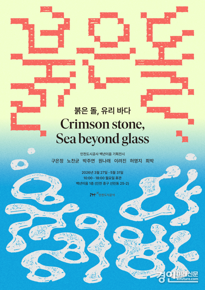 (경인미래신문=민경호 기자) 인천도시공사(iH)는 근대건축문화자산 2호 ‘백년이음’에서 인천 지역의 청년·활동작가와 협업한 기획전시 '붉은 돌, 유리 바다'를 오는 3월 27일부터 5월 31일까지 개최한다.