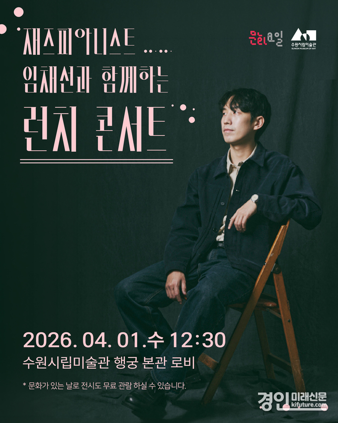 (경인미래신문=민경호 기자) 경기도 수원시립미술관(관장 남기민)은 4월 1일(수)부터 ‘문화가 있는 날’을 확대 운영하며 무료 전시 관람과 공연 프로그램을 선보인다.