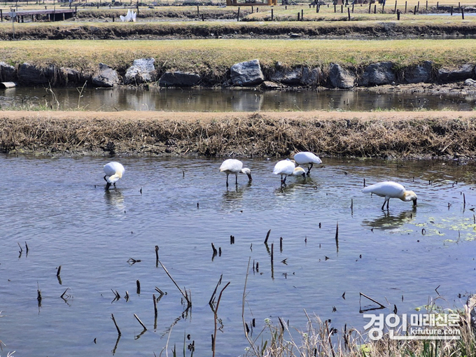 (경인미래신문=민경호 기자) 시흥시 연꽃테마파크에 지난 5일 봄을 맞아 저어새 가족들이 찾아오면서 도심 속 생태공간으로서의 가치가 다시 주목받고 있다.
