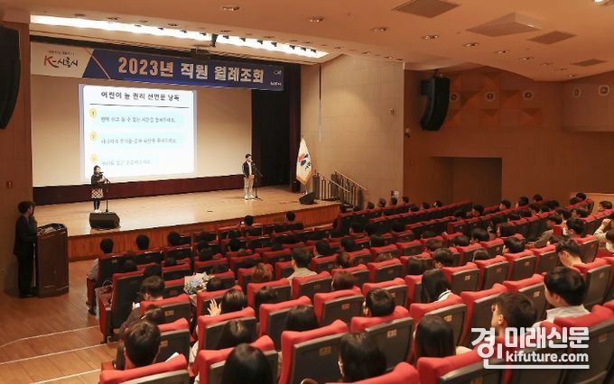 시청 직원 250여 명이 참석해 진행된 행사에는 시흥시 아동참여위원회를 대표해 김지민, 이지은 아동이 ‘아동의 놀 권리’에 대한 선언문을 낭독하고 아동권리의 중요성을 되새겨보는 시간을 마련했다.