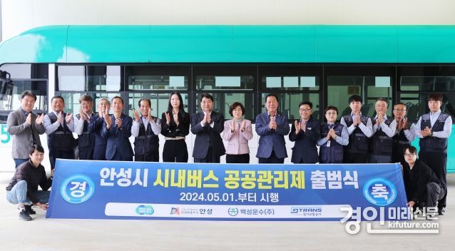 (경인미래신문=민경호 기자) 안성시는 29일 오후 2시 30분에 백성운수 차고지에서 김보라 시장을 비롯해 안성시의회 안정열 의장, 경기도청 윤태완 버스정책과장, 경기교통공사 양우석 상임이사 및 운수회사 관계자 등이 참석하여 안성시 시내버스 공공관리제 시행을 위한 출범식을 가졌다.
