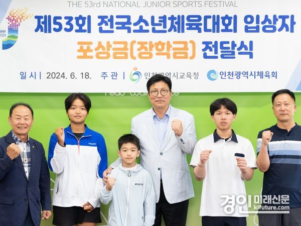 (경인미래신문=민경호 기자) 인천광역시교육청은 지난 18일 제53회 전국소년체육대회에 입상한 학생 선수에게 경기력 향상 장학 증서를 전달했다.