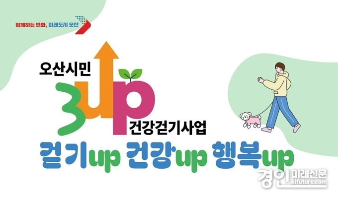 (경인미래신문=민경호 기자) 오산시(시장 이권재)는 10월부터 12월 31일까지 시민들의 꾸준한 건강관리를 돕기 위해 ‘3UP 건강걷기 챌린지’를 연말까지 운영한다고 밝혔다.