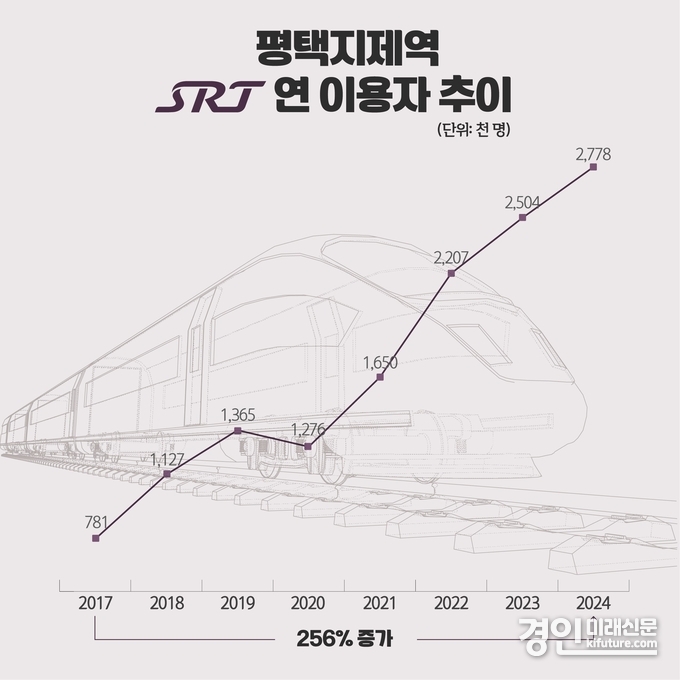 실제 ‘철도연감’에 따르면 평택지제역의 연간 SRT 승하차 인원은 2017년 78만 1000명이었지만 2024년에는 277만 8000명으로 256%의 증가율을 기록했다.