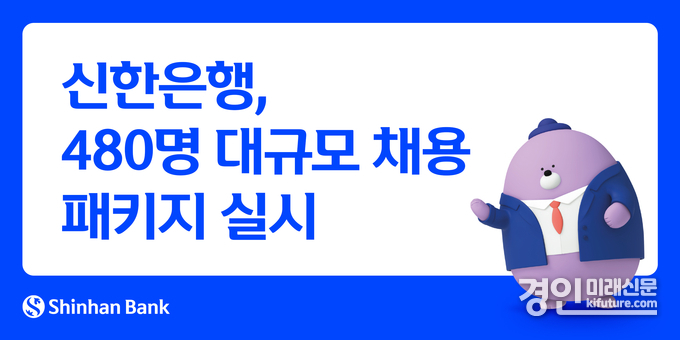 (경인미래신문=민경호 기자) 신한은행(은행장 정상혁)은 청년고용 확대와 포용적 일자리 창출을 위해 총 480명 규모의 채용 패키지를 진행한다고 13일 밝혔다.