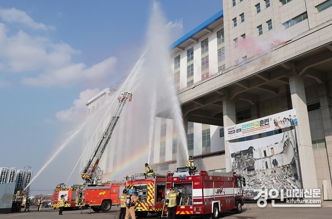 훈련은 지난 경주·포항지진의 규모를 상정해 진행됐으며 서구 청라 전기차 화재 이후 사회 안전사고 이슈로 주목받은 전기차 화재 대응 훈련도 함께 실시됐다.