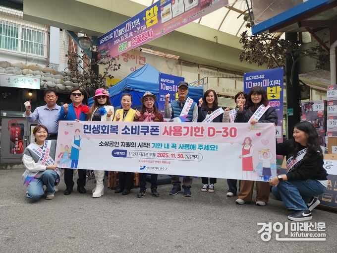 (경인미래신문=민경호 기자) 인천 연수구(구청장 이재호)는 민생회복 소비쿠폰 사용기한(11월 30일)이 임박함에 따라 지난달 31일 송도역전시장에서 민생회복 소비쿠폰 사용 독려 캠페인을 했다.