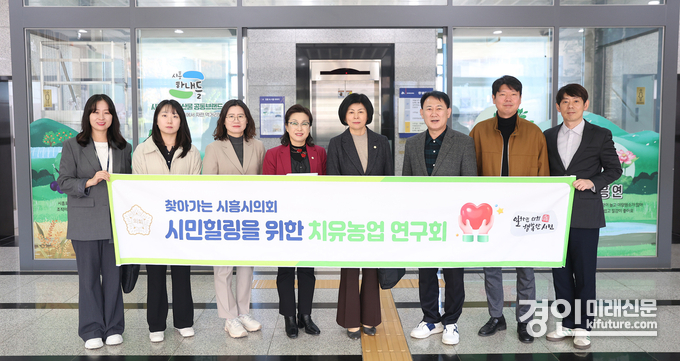 (경인미래신문=민경호 기자) 시흥시의회 의원 연구단체 ‘시민힐링을 위한 치유농업 연구회’가 지난 14일 농업기술센터에서 간담회를 열고 그간의 연구 활동 결과를 공유하며 시흥형 치유농업의 발전 방향을 논의했다.