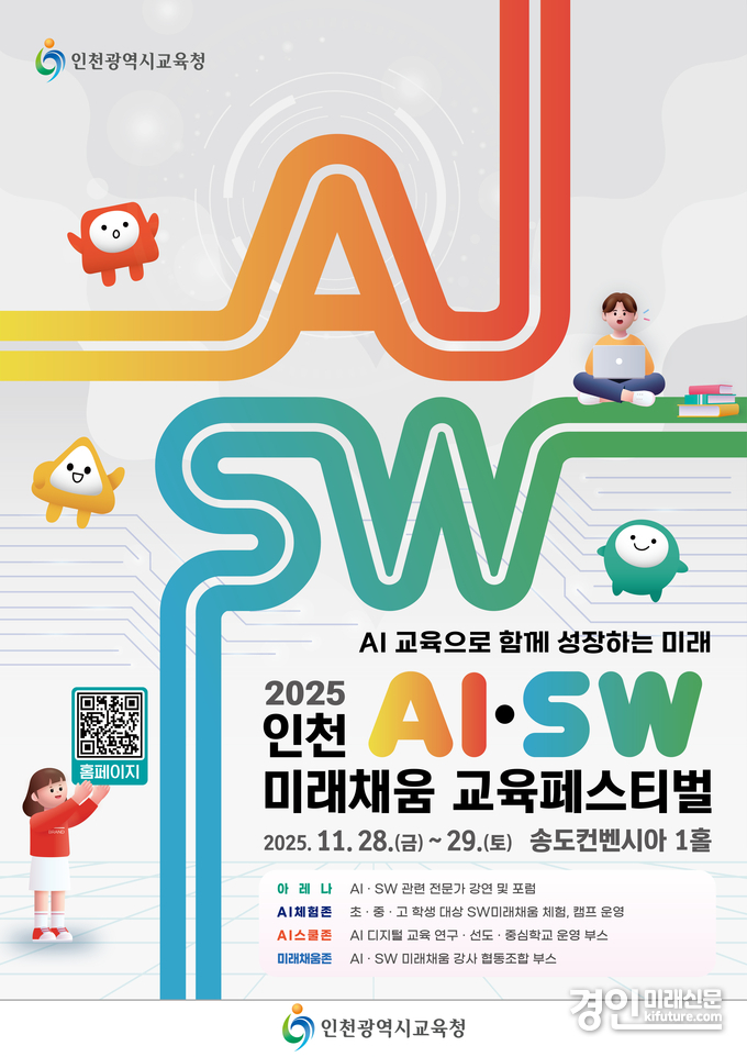 (경인미래신문=민경호 기자) 인천광역시교육청(교육감 도성훈)은 오는 28일부터 29일까지 2일간 송도컨벤시아 전시 1홀에서 ‘2025 인천 AI·SW 미래채움 교육페스티벌’을 개최한다고 밝혔다.