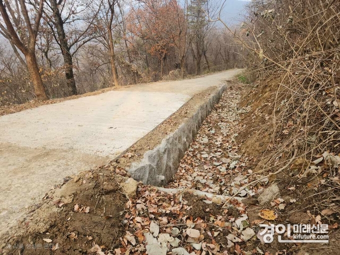 남동 임도는 강우 시 반복적으로 물이 넘치던 구간에 배수관로를 신설하고 노면을 정비해 우천 시 보행자와 차량 통행 불편을 해소했다.