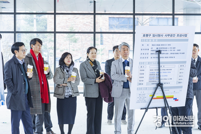 (경인미래신문=민경호 기자) 화성특례시의회 기획행정위원회는 지난 25일 2026년 2월 1일 효행구 출범을 앞두고 임시 구청사 조성 사업 추진 상황을 점검하기 위해 공정 현장을 방문했다.