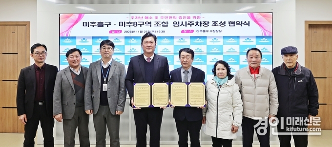 (경인미래신문=민경호 기자) 인천 미추홀구(구청장 이영훈)는 지난 27일 미추8구역 주택재개발정비사업 조합과 ‘임시주차장 조성 협약’을 체결했다.