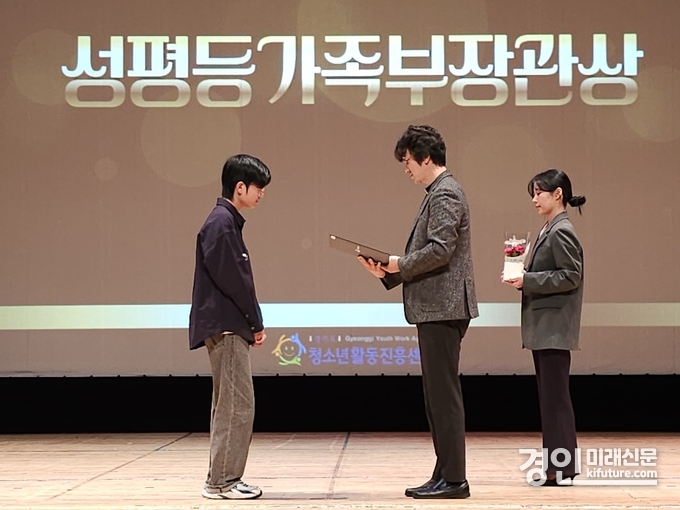 (경인미래신문=민경호 기자) (재)화성시여성가족청소년재단(이사장 정명근) 화성시청소년수련관(이하 화성시청소년수련관)은 29일 경기도 수원청소년문화센터 온누리아트홀에서 개최된 경기도 청소년 자원봉사대회 터전 부문에서 ‘성평등가족부 장관상’을 수상했다.
