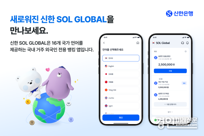 (경인미래신문=민경호 기자) 신한은행(은행장 정상혁)은 국내 거주 외국인 고객의 비대면 금융 접근성을 높이기 위해 외국인 고객 전용 앱 ‘SOL Global’을 전면 개편했다고 1일 밝혔다.