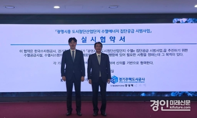 (경인미래신문=민경호 기자) 경기주택도시공사(GH)는 3일 GH 수원 본사 9층 역량개발센터에서 한국수자원공사(K-water)와 함께 ‘광명시흥 도시첨단산업단지 수열에너지 집단공급 시범사업’ 추진을 위한 실시협약을 체결했다고 밝혔다.