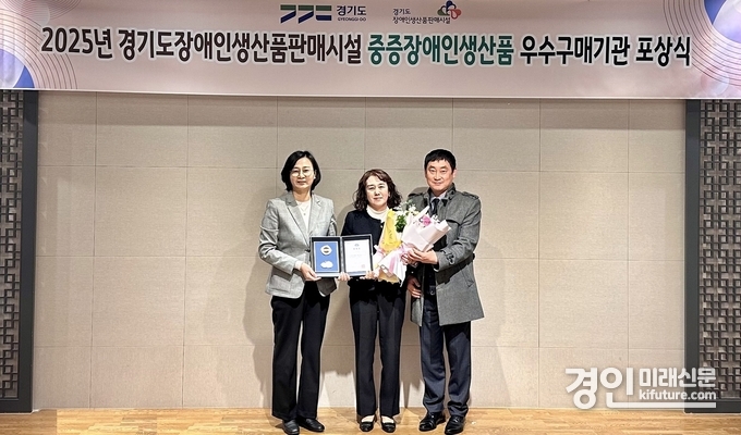 (경인미래신문=민경호 기자) 시흥도시공사(사장 유병욱, 이하 공사)는 지난 11월 28일 경기도로부터 ‘2025년 중증장애인생산품 우수구매기관’로 선정되어 경기도지사 개인 표창을 수상했다.