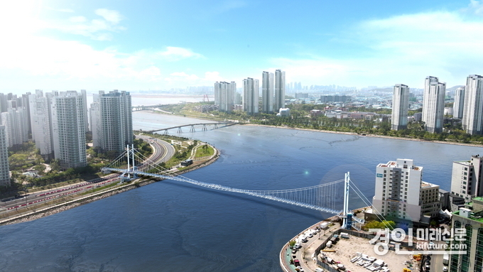 (경인미래신문=민경호 기자) 서해안 대표 명소인 시흥 월곶포구의 해상 경관을 배경으로 배곧동과 월곶동을 연결하는 현수교 형태의 횡단보도교가 건립된다.