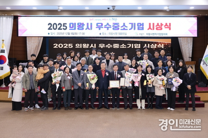(경인미래신문=민경호 기자) 의왕시(시장 김성제)가 관내 중소기업의 경쟁력을 강화하고 지역경제를 이끌 우수 기업을 발굴·격려하기 위해 ‘2025년 의왕시 우수중소기업’ 8개사를 선정하고 12월 9일 시청 대회의실에서 시상식을 개최했다.