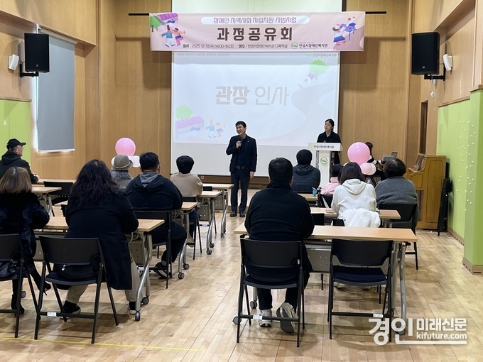 (경인미래신문=민경호 기자) 사회복지법인 한길복지재단(이사장 한창섭)에서 운영하는 안성시장애인복지관(관장 김덕수)은 지난 10일 장애인의 자립생활 지원의 내용을 담은 ‘자립지원 시범사업 과정공유회’를 실시했다.