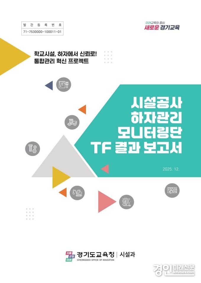 경기도교육청(교육감 임태희)은 2025년 한 해 동안 추진한 하자관리 업무 개선의 성과를 담은 ‘시설공사 하자관리 모니터링단 특별전담 조직(TF) 결과 보고서’를 15일 발표했다.