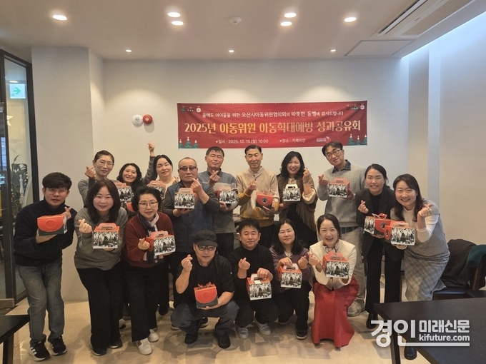 (경인미래신문=민경호 기자) 오산시(시장 이권재)는 지난 15일 카페위안에서 ‘2025년 오산시아동위원협의회(회장 우기제) 아동학대예방 성과공유회’를 개최하고 한 해 동안 아동학대 예방을 위해 활동해 온 아동위원들의 성과를 공유하는 시간을 가졌다고 밝혔다.