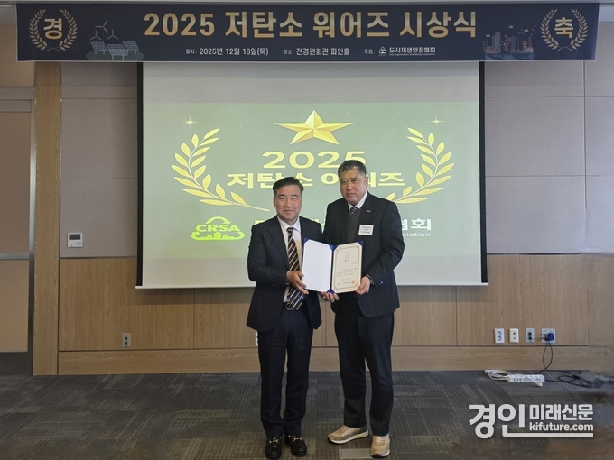 (경인미래신문=민경호 기자) 시흥도시공사(사장 유병욱, 이하 공사)가 지난 18일 도시재생안전협회가 주최한 ‘2025 저탄소 어워즈’ 행사에서 ‘ESG(환경·사회·지배구조) 저탄소 대상’을 수상했다고 밝혔다.