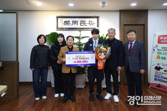 (경인미래신문=최대성 기자) 남양주시는 지난 18일 시장 집무실에서 2025년 ISU 주니어 스피드 월드컵 2차 대회에서 우승한 신선웅 선수에게 포상금을 전달하고 국제대회 입상 성과를 격려했다.