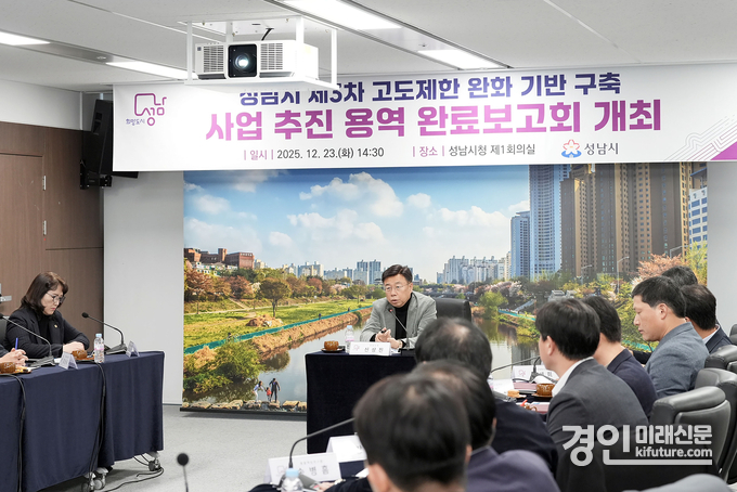(경인미래신문=민경호 기자) 성남시(시장 신상진)는 지난 23일 시청 제1회의실에서 ‘제3차 고도제한 완화방안 기반 구축 사업’ 연구용역 완료보고회를 열고 수정·보완한 고도제한 완화 방안을 토대로 국방부에 추가 완화를 재요청하기로 했다.
