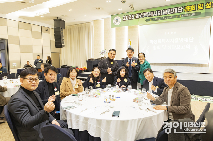 (경인미래신문=민경호 기자) 화성특례시의회(의장 배정수)는 지난 24일 호텔 푸르미르 그랜드볼룸에서 열린 ‘2025년 화성시 지역자율방재단 직무교육 및 활동보고회’에서 한 해 동안 지역 안전을 위해 헌신해 온 단원들의 노고를 격려하고 우수단원 표창을 축하했다.