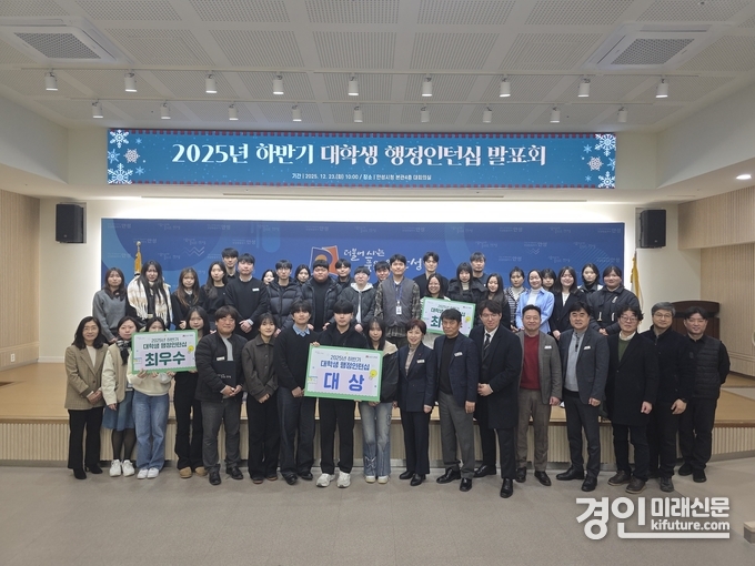 (경인미래신문=민경호 기자) 안성시는 지난 23일 시청 상황실에서 대학생들의 창의적인 아이디어를 시정 발전에 접목하기 위한 2025년 하반기 대학생 행정인턴십 발표회를 성황리에 개최했다.